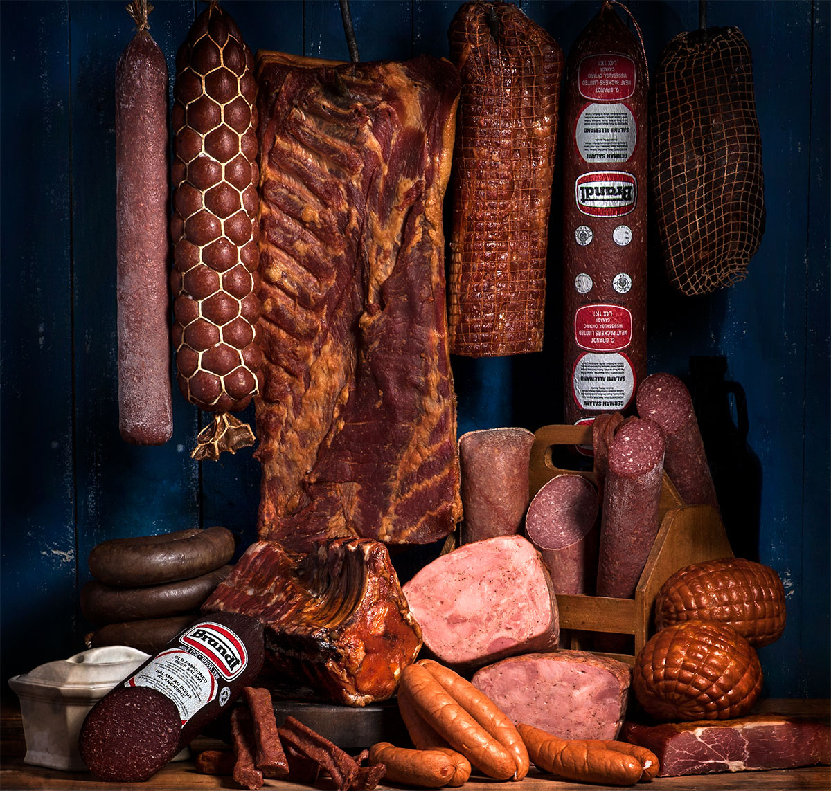 Full Selections of Brandt Meats Sausages, Salami and Hams