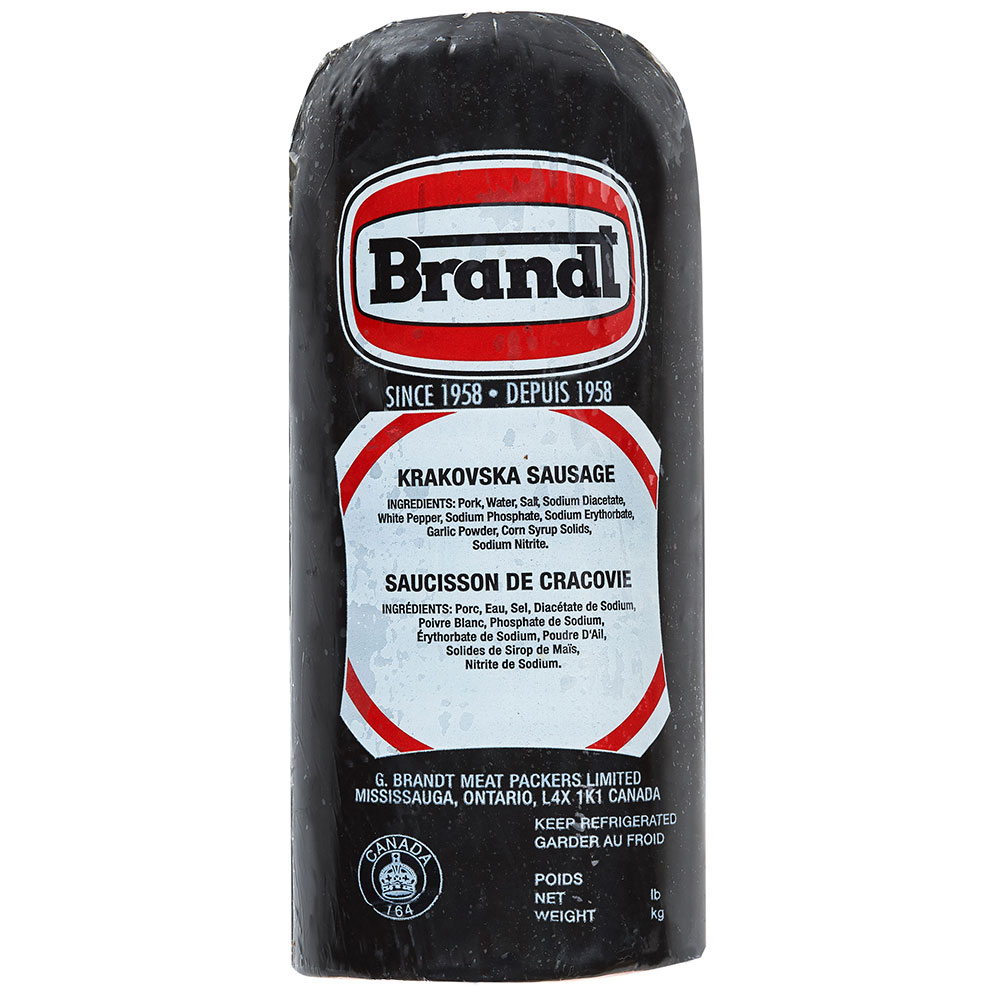 Le saucisson de Cracovie est un produit de tradition polonaise préparé à partir de morceaux de jambon maigre, et assaisonné d’ail et de poivre.